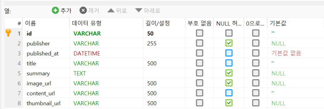 뉴스데이터를 가져와서 DB에 저장합니다.