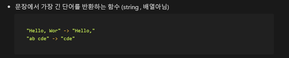그리고 분리된 요소들만큼 반복을 돌며 가장 긴 단어를 찾을 것이기 때문에