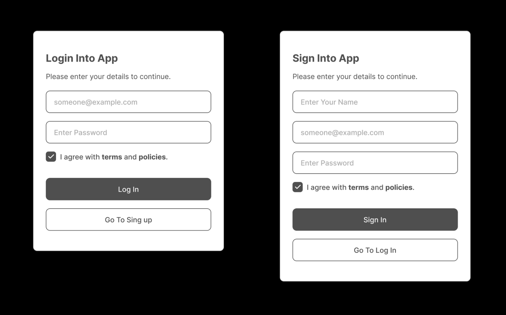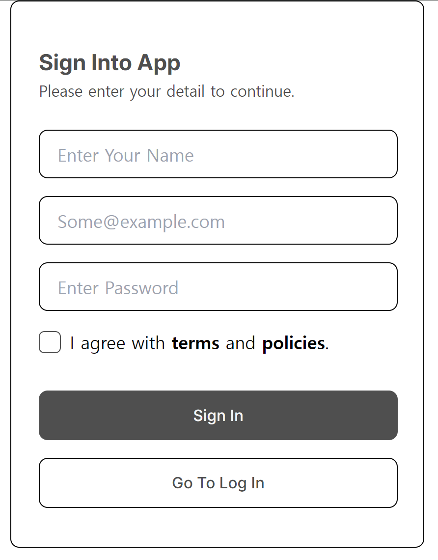 위와 같은 UI를, 오늘 만들었던 Button, Input, Checkbox 컴포넌트를 재사용하여 만드는 것이 오늘의 과제였습니다.